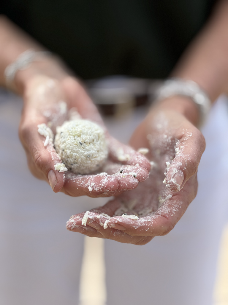 Prélevez une cuillère du mélange. Façonnez entre les paumes de vos mains des boulettes.